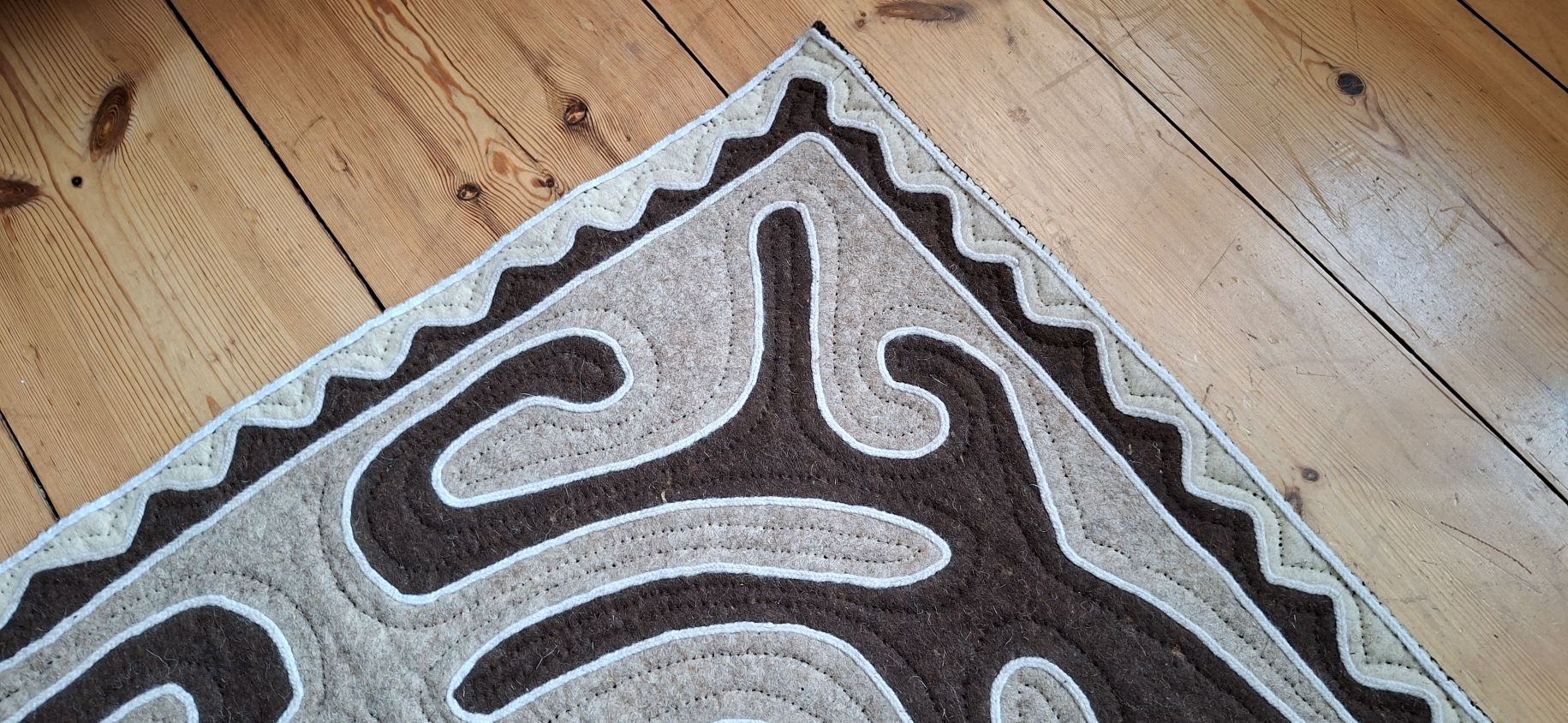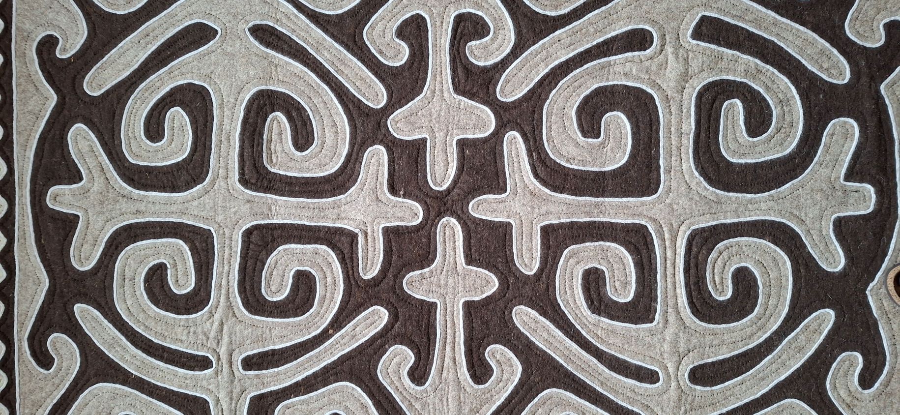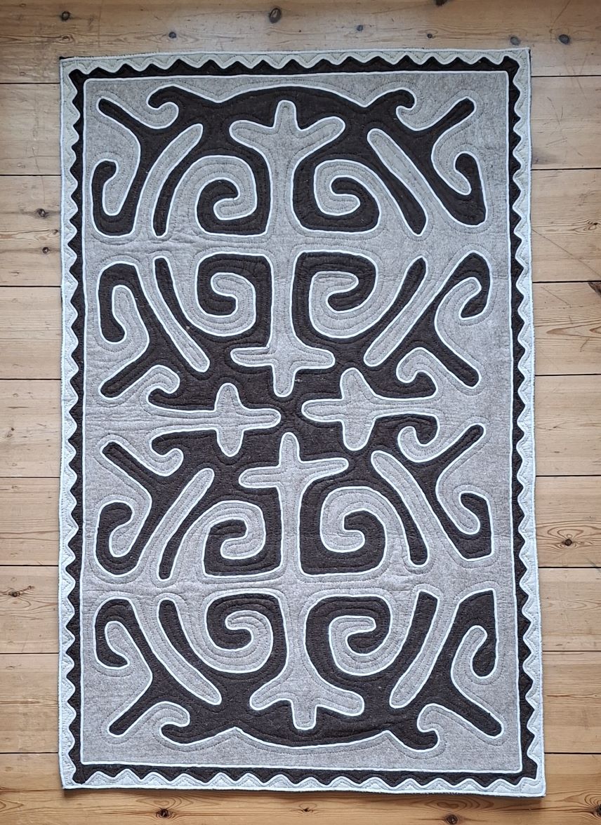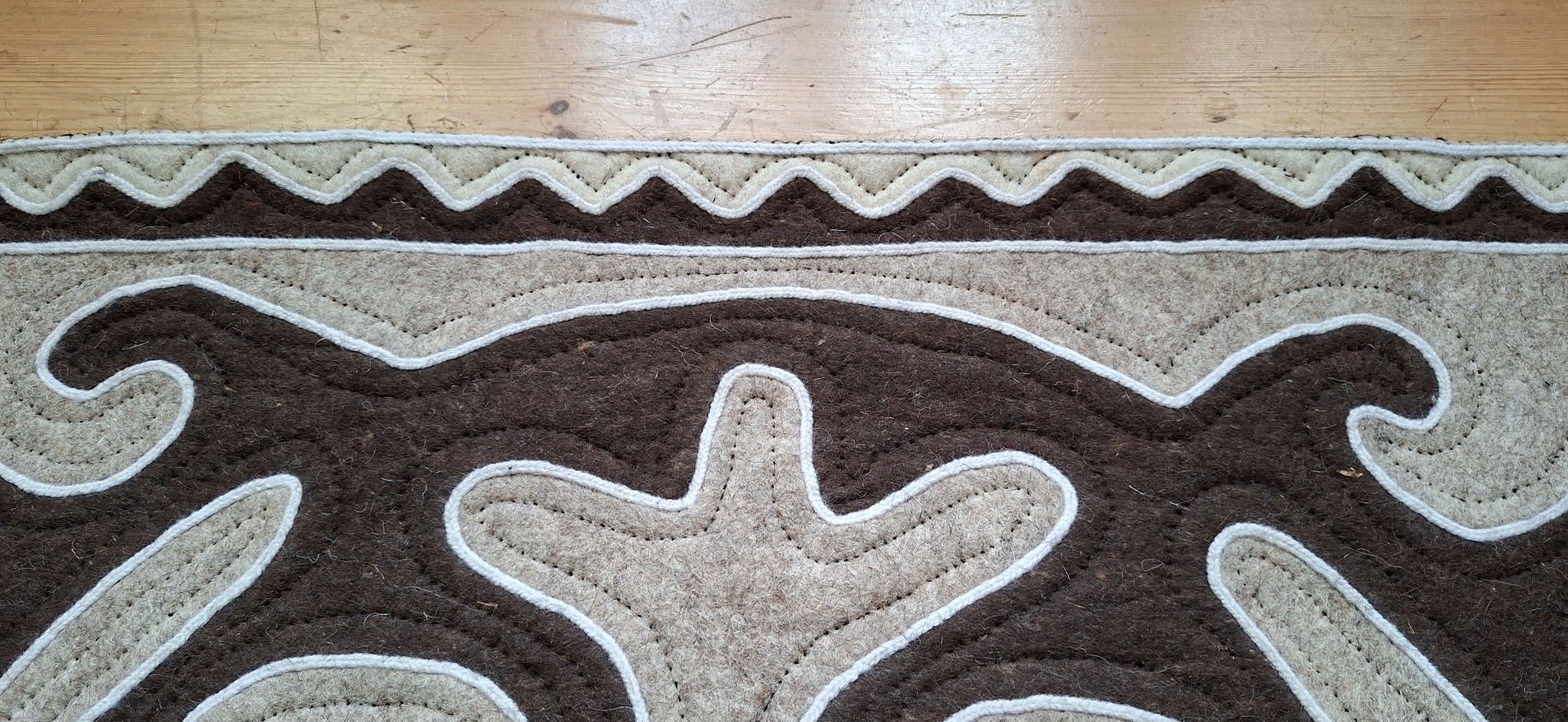 Shyrdak, braun mit graubeigem Muster, ca. 108 x 174cm, handgearbeitet, 100% Wolle, Stärke ca. 1cm